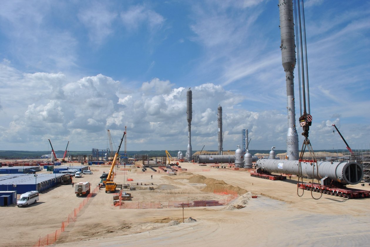 Так называемый "нулевой цикл" на площадке строительства крупнейшего газоперерабатывающего предприятия специалисты выполнили за два года. Момент окончания фундаментных работ на первом пусковом комплексе был отмечен приездом Президента РФ Владимира Путина на площадку завода — 3 августа 2017 года.