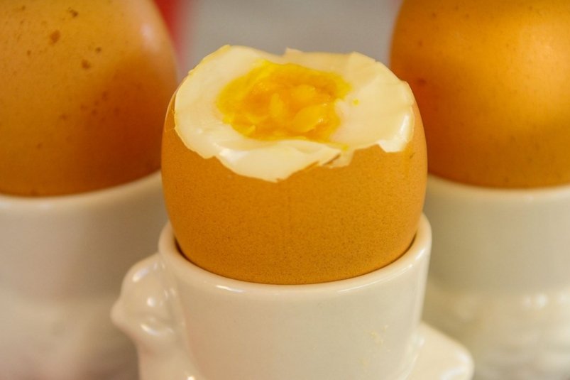 Без бурного кипения скорлупа остаётся целой. Желток получается ярко-жёлтым, равномерным, без серо-зелёного ободка. Консистенция белка будет более бархатистая и приятная.