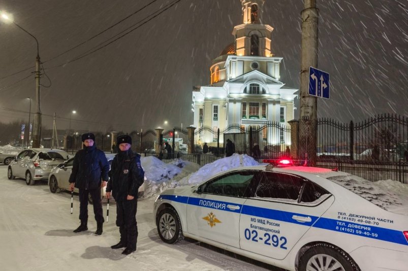 PriamurMedia, 8 января. Рождественские богослужения в Приамурье прошли без происшествий. Сотрудники полиции совместно с Росгвардией, казаками, народными дружинами и частными охранниками следили за общественным порядком и безопасностью на дорогах в регионе.