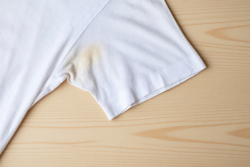 Желтые разводы под мышками могут появиться даже у самых аккуратных хозяек. Они появляются из-за сложного "коктейля" из солей, белков и жиров пота, который при нагревании и стирке образует стойкую пленку. Чем старше пятно, тем труднее его вывести.