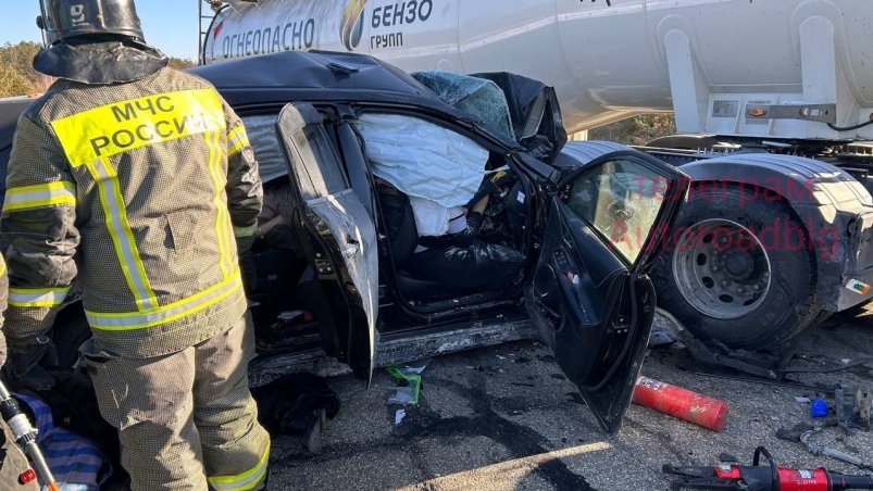 В Шимановском округе кроссовер столкнулся с бензовозом: погибли четверо. Фото: телеграм-канал "Autoroadblg" (18+)