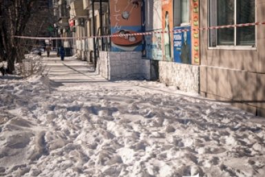 Глыбы снега с крыш парализуют тротуары в Благовещенске