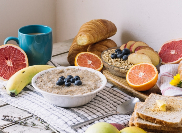 Во время завтрака старайтесь избегать продуктов, богатых сахаром и насыщенными жирами, таких как сладости, пончики, круассаны и сладкие каши. Эти продукты могут привести к быстрому подъему уровня сахара в крови и повышению аппетита позднее в течение дня.