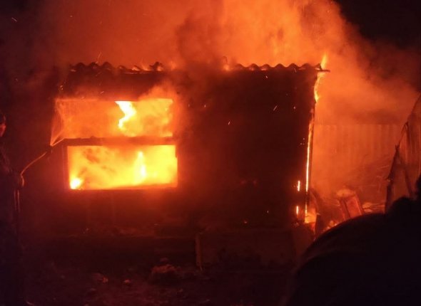 Хозпостройка загорелась ранним утром в селе Марково. Фото: телеграм-канал "Амурский пожарный" (18+)