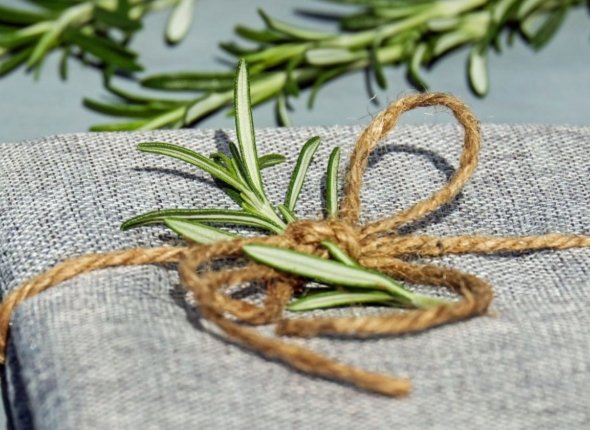 Связанные маленькие пучки розмарина могут стать прекрасным прощальным подарком для гостей — полезным, ароматным и символичным. К нему можно прикрепить карточку с пожеланиями.