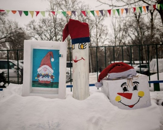 Горожане проявили чудеса фантазии, чтобы встретить праздник в окружении волшебства: из снега и подручных материалов сотворили улыбающихся снеговиков, Дедов Морозов и Снегурочек, гномов и других сказочных героев.