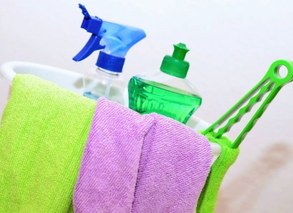 Растворите 1–2 ст. л. соли в ведре тёплой воды. Соль убирает жир и помогает лучше отмыть кухонный фартук или пол в прихожей.