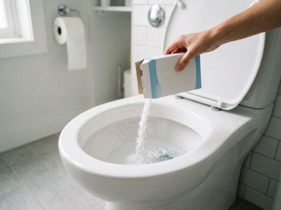 Быстрый вариант для тех, кто не хочет ждать всю ночь. Сначала стенки смачивают водой, затем посыпают содой и заливают сверху уксусом. Начинается активное шипение, которое помогает разрушить налёт и удалить неприятный запах. Через полчаса унитаз очищают ёршиком и смывают. Такой метод подходит для регулярной профилактики, особенно если не хочется использовать хлорку.