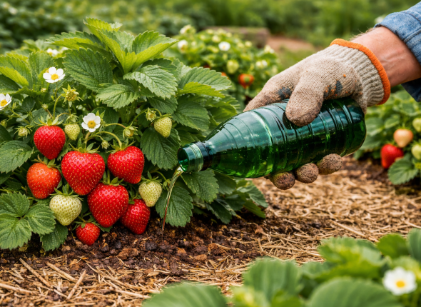 Апрель — решающий месяц для клубники. Корни активно тянут питание, и если его не хватает, куст уходит в зелень, а цветоносов почти не образуется. Кроме того, просыпаются вредители и грибковые инфекции. Луковая шелуха решает обе задачи: даёт питание и природную защиту.