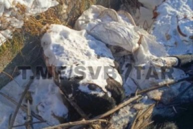 Останки домашнего скота притягивают птиц и бродячих собак